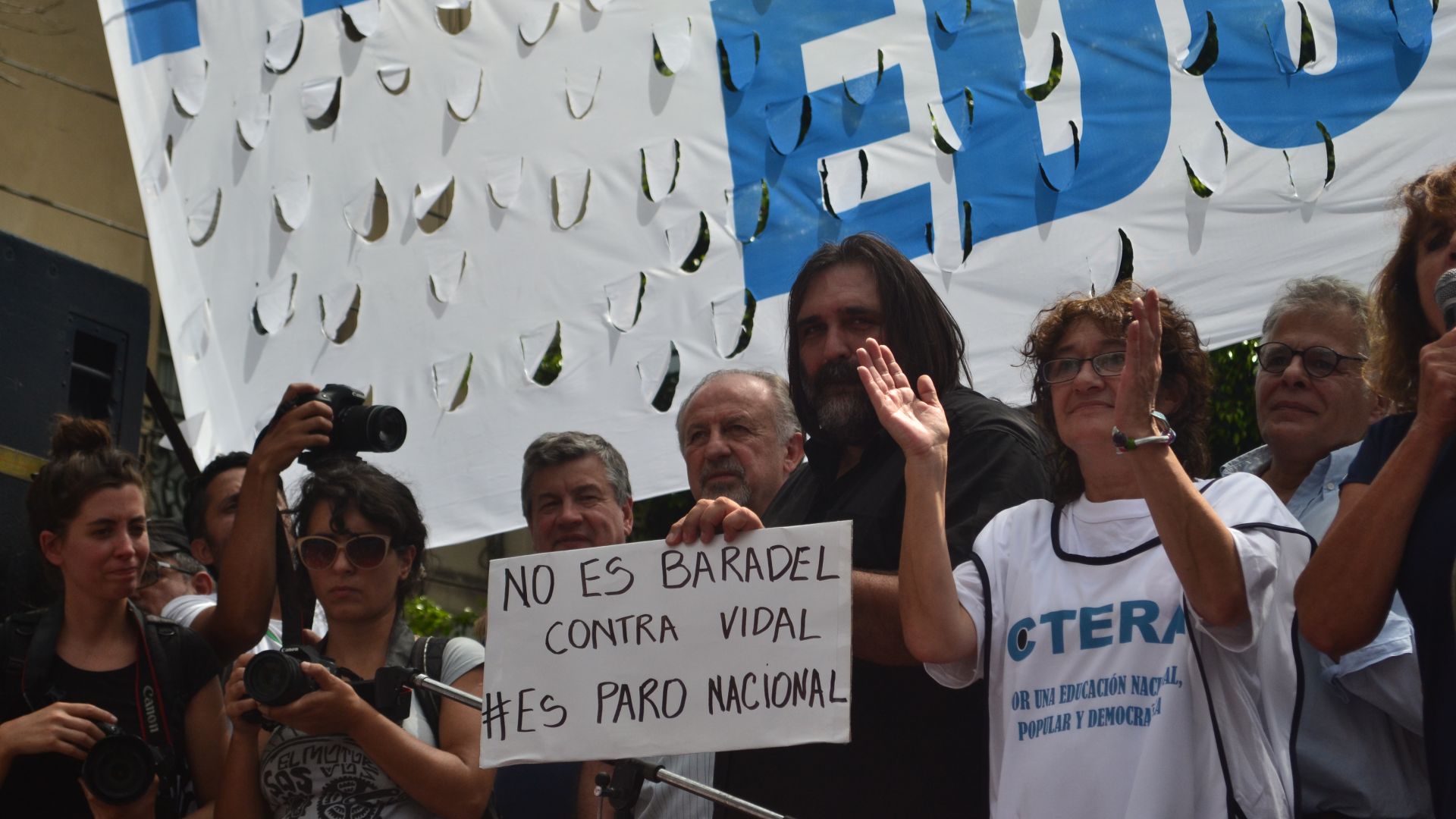 Desde el escenario principal, los representantes gremiales advirtieron que si el Gobierno no convoca a la paritaria, como lo exige la Ley de Financiamiento Educativo, sancionada en 2006, habrá una marcha nacional educativa a Plaza de Mayo.