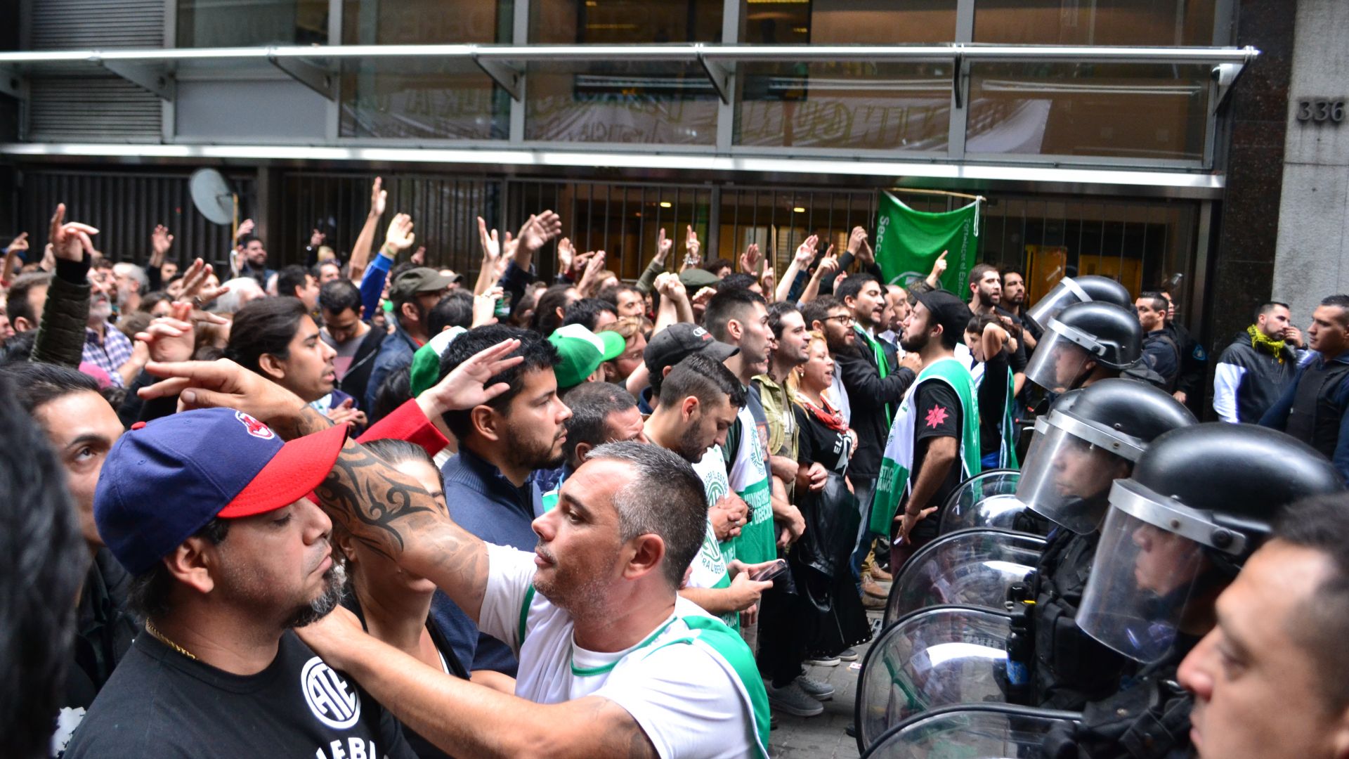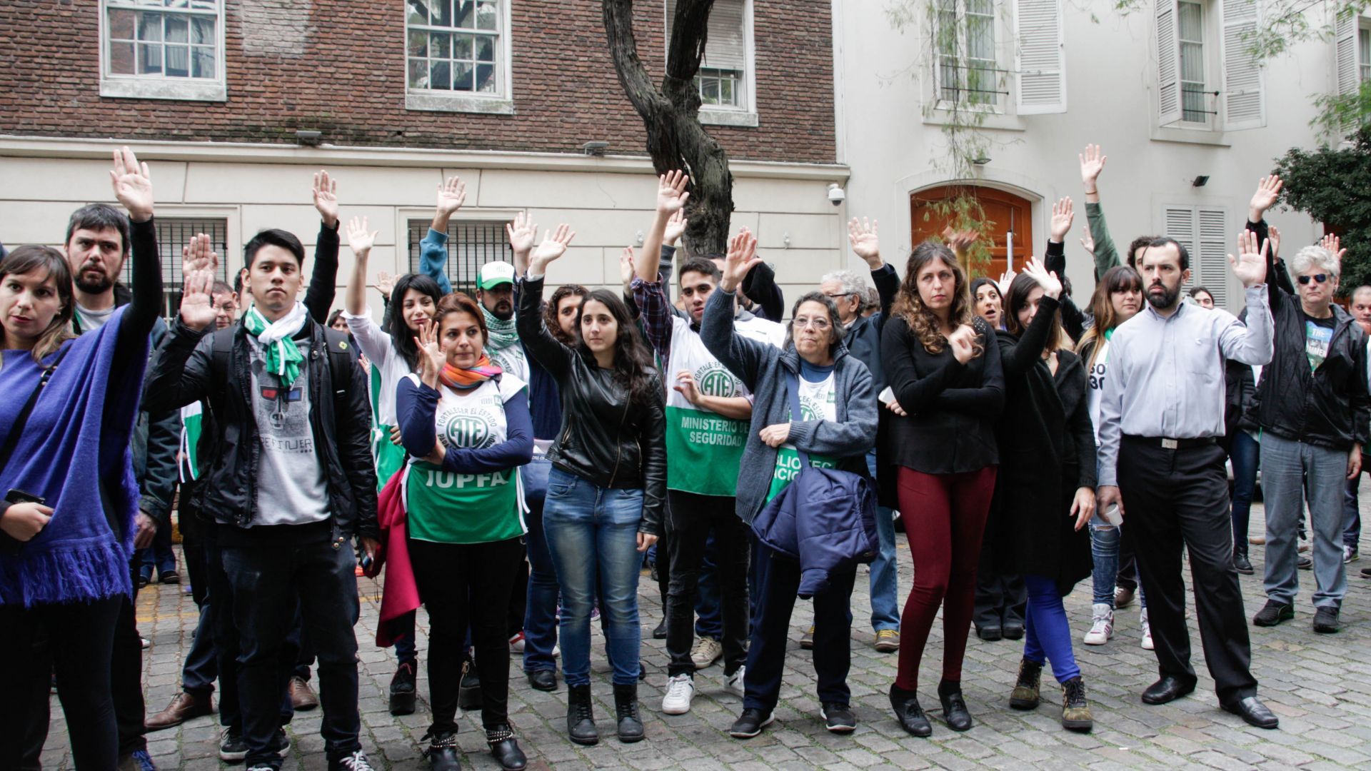 En medio de la jornada de lucha, un grupo de apologistas de la dictadura se acercó con carteles y consignas violentas al Ministerio de Justicia para provocar y amedrentar a los trabajadores y trabajadoras estatales, que realizaban una asamblea en las puertas del edificio de manera pacífica. En ese momento, la Policía en vez de defender a los trabajadores de las agresiones dispuso un cordón policial con los escudos frente a los trabajadores estatales y, entre forcejeos, cargó con palos y gas pimienta contra los delegados y afiliados de ATE Capital.