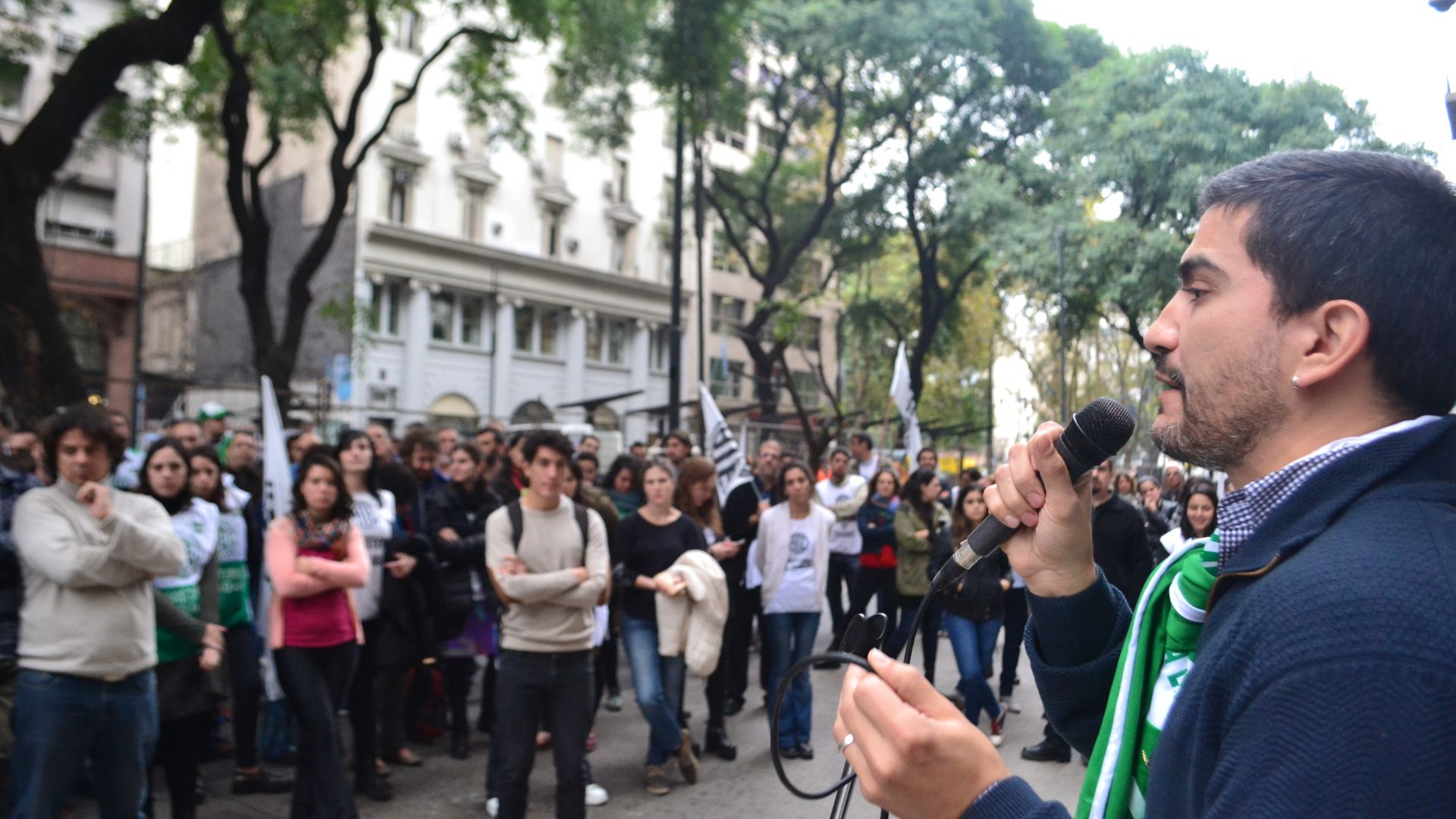 Daniel Catalano, Secretario General de ATE Capital, se hizo presente en el Ministerio de Desarrollo Social de la Nación, donde se reunieron más de 1500 trabajadores y trabajadoras estatales en asamblea. Allí calificó como “vergonzosa” la propuesta salarial y señaló que “nosotros de ninguna manera vamos a estar arrodillados a este Gobierno que se quiere cargar los derechos de todos los trabajadores y trabajadoras. Nosotros no podemos aceptar el 20% en tres cuotas”. Además, denunció como “extorsivo” el plus por presentismo y con respecto al plus por productividad se preguntó: “¿Quién mide esa productividad? ¿Cómo la van a evaluar? ¿Qué es la productividad para ellos?”.