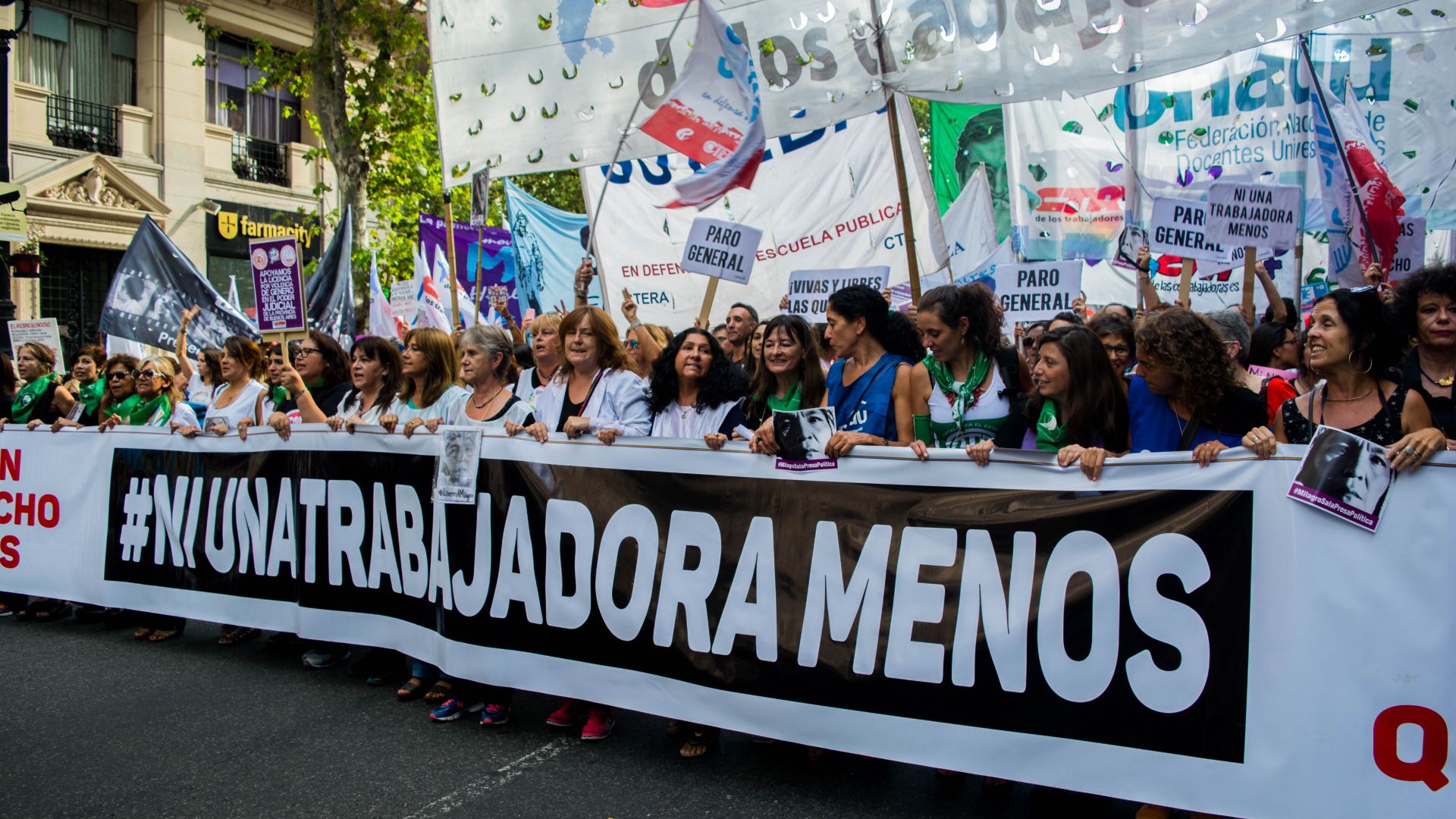 Sotelo, además, reivindicó la dimensión política del paro. "El paro nos da la oportunidad histórica para conmover estructuras, pero además para convocarnos a todas las mujeres y echar luz sobre todos esos trabajos que son gratis, que por mandato histórico cargamos y hoy estamos denunciando como parte de la estructura de desigualdad”, señaló la dirigente entre cánticos, banderas y carteles que exigían la liberación de Milagro Sala, la reglamentación del aborto legal, seguro y gratuito, y la convocatoria a un paro general, entre otras demandas populares.